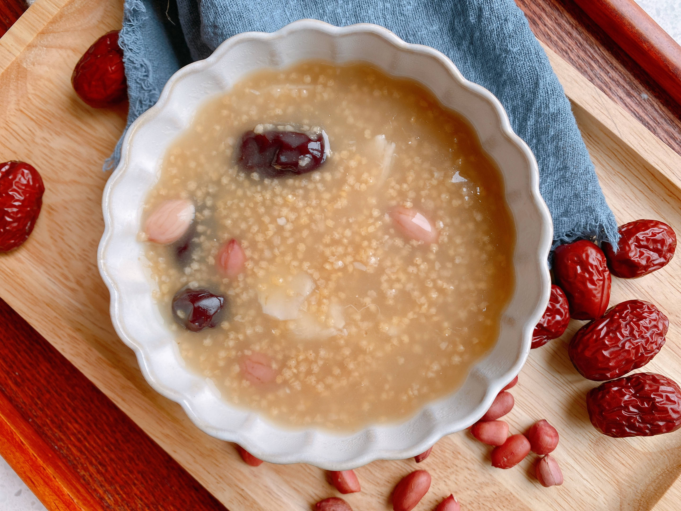 推荐做花生红枣小米粥,早上喝一碗,暖身又养胃,还能补气血: