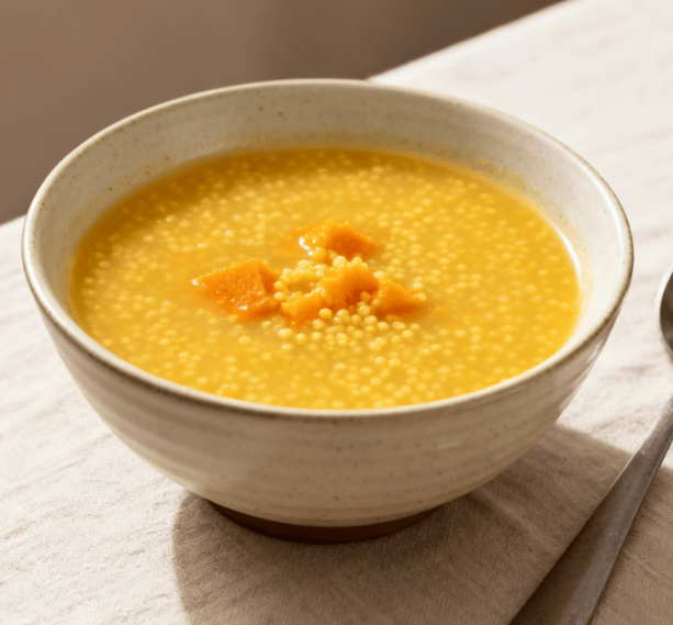 食材:小米、南瓜、红糖(体寒加量)各适量。