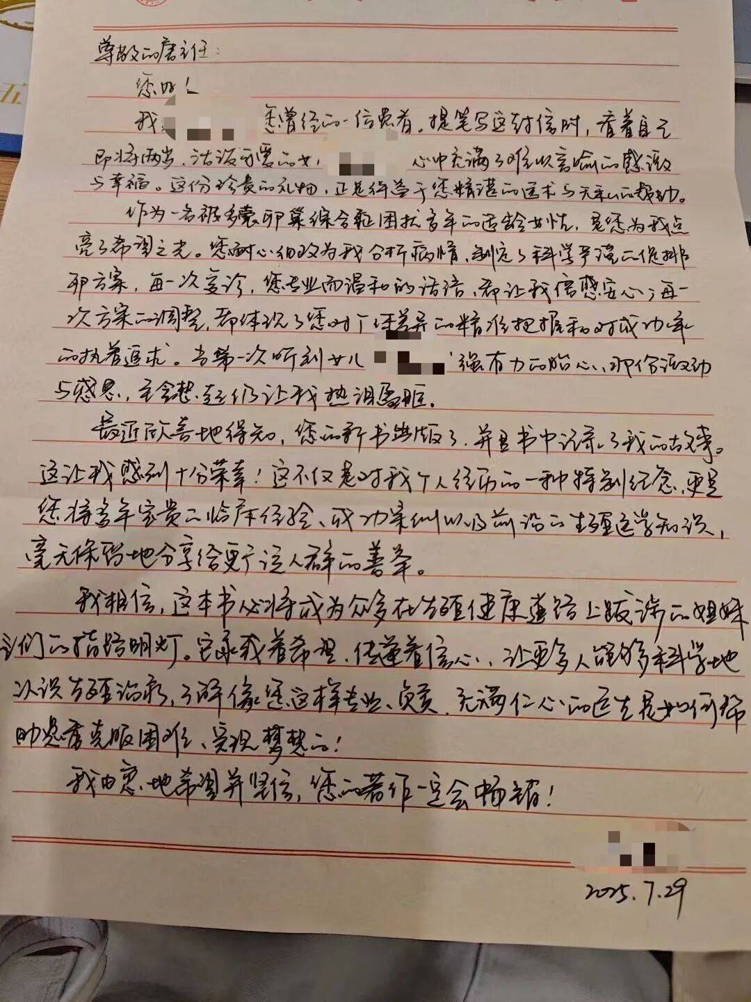 唐荣欣收到书中提及的患者的信。(图/受访者提供)
