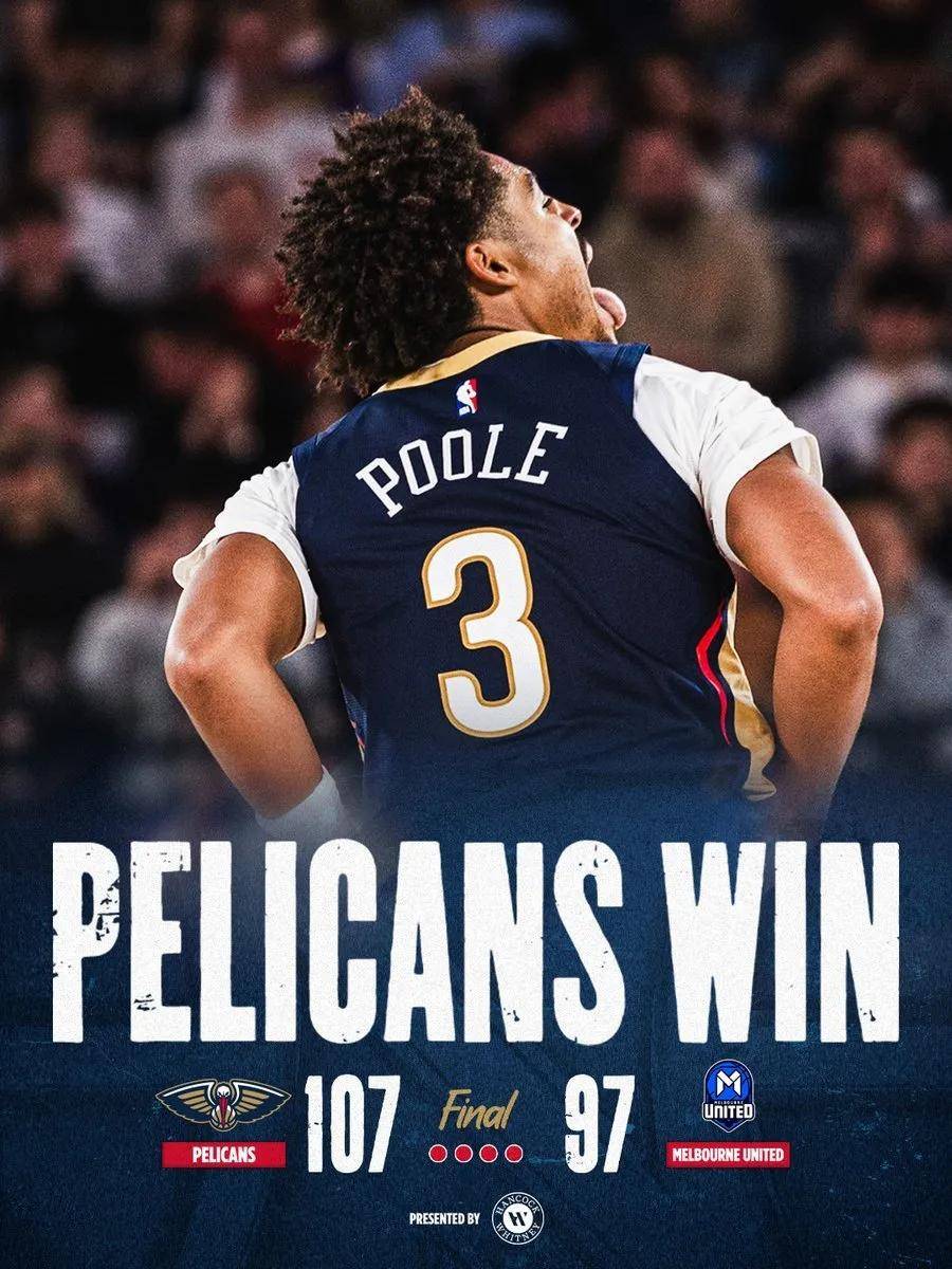需要注意的是,鹈鹕全队三分球命中率并不理想,全场33投仅8中,而墨尔本联队则投中了12个三分球,41投12中。