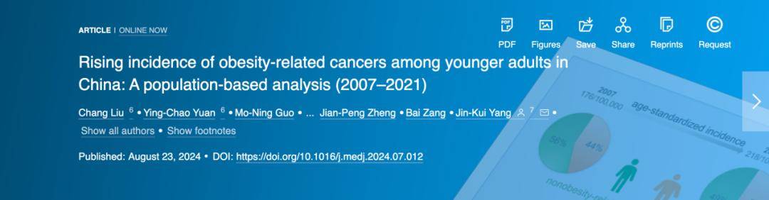 2024年,北京同仁医院杨金奎教授团队在细胞子刊《Med》上发表的一项研究显示,2007~2021年,国人因肥胖导致的癌症问题越来越严重,而且发病风险主要在年轻人群(<50岁)增加。到2031年,与肥胖相关的12种主要癌症,总的发病率预计将翻一番(增长约1.89倍)。①