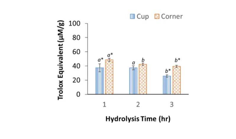 燕窝(EBN)还有许多促进健康的特性,包括抗氧化剂。尽管先前文献中已有关于燕窝水解产物抗氧化特性的报道,但关于燕窝不同部位酶解产物的抗氧化能力的研究却很少。因此,科学家研究燕盏和燕角酶解产物的抗氧化能力。为此,采用不同的酶解时间(1、2和3小时),检测了燕盏和燕角酶解产物的抗氧化能力。
