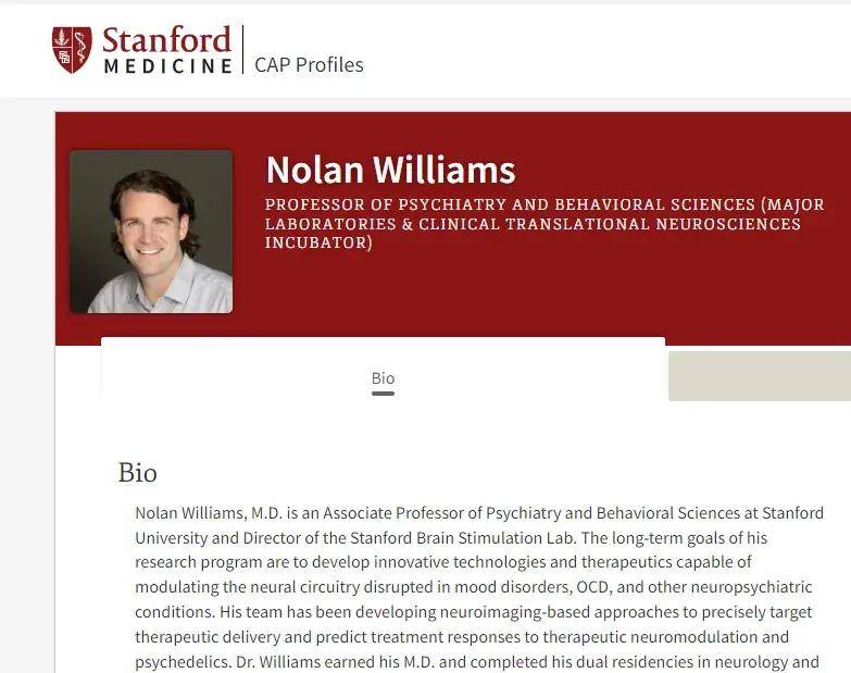 斯坦福大学官网上诺兰·威廉姆斯的部分简介