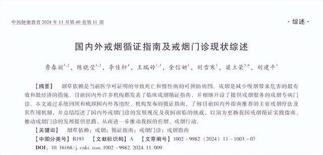 [1]鲁春丽,国 内 外 戒 烟 循 证 指 南 及 戒 烟 门 诊 现 状 综 述,中 国健康 教 育,2024-11-14