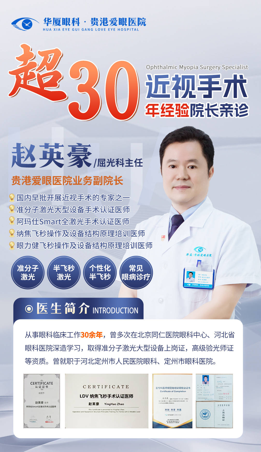 这套详细的术前检查不仅能为手术安全性提供有力保障,还能帮助很多患者排查出平时不易察觉的眼部疾病,比如圆锥角膜、干眼症等。贵港爱眼眼科赵英豪院长表示,近视手术术后视力,并非单纯由手术方式决定,而是建立在全面的术前检查数据,以及经验丰富的专家对数据的综合分析之上。