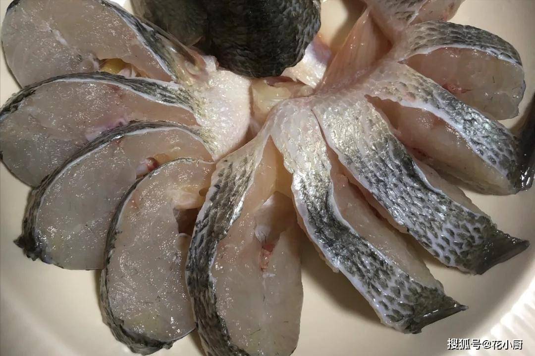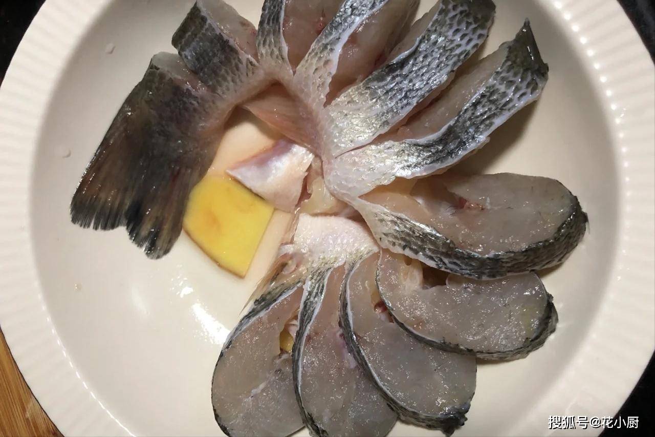 1、先把鲈鱼处理干净。接着把鱼头切下来,然后从鱼背朝着鱼腹的方向切鱼身,注意啊,可千万别切断了,切好之后,把鱼放到一个大碗里,倒上点料酒,再撒上点盐,用手把它们涂抹均匀,腌制个 15 分钟。