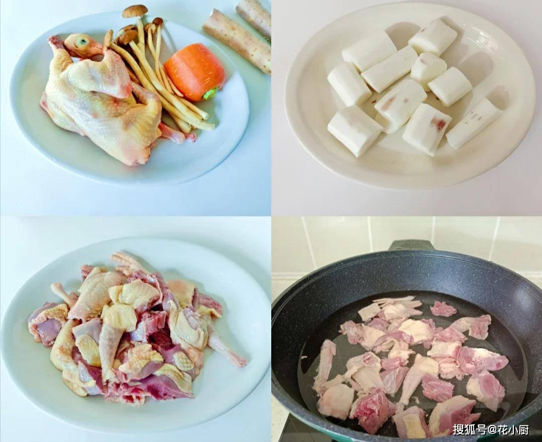食材:鸽子一只、胡萝卜、茶树菇各150克、山药一根、料酒两勺、生抽,盐各一勺