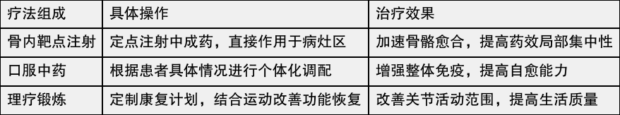 李氏三联疗法的主要治疗内容是什么?李氏三联疗法结合了骨内靶点注射、口服中药和个性化理疗,通过多维度的措施促进患者康复。