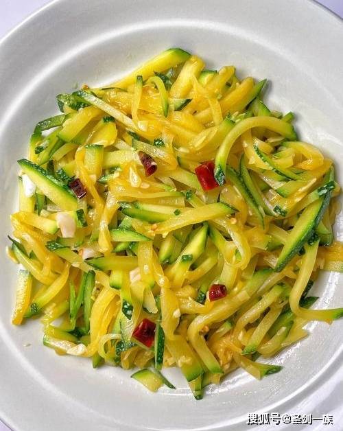 食材:嫩南瓜1个、干辣椒3个、蒜末1勺。