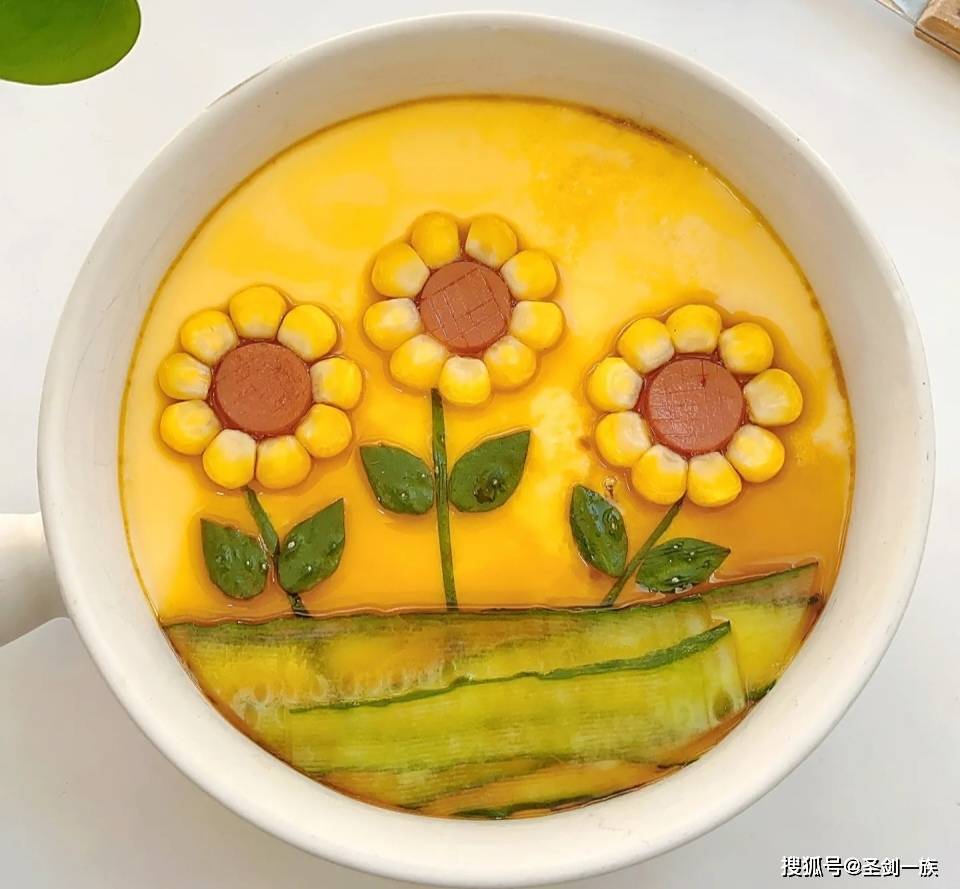 4. 装饰调味:用模具压胡萝卜花摆盘,淋生抽、香油即可。