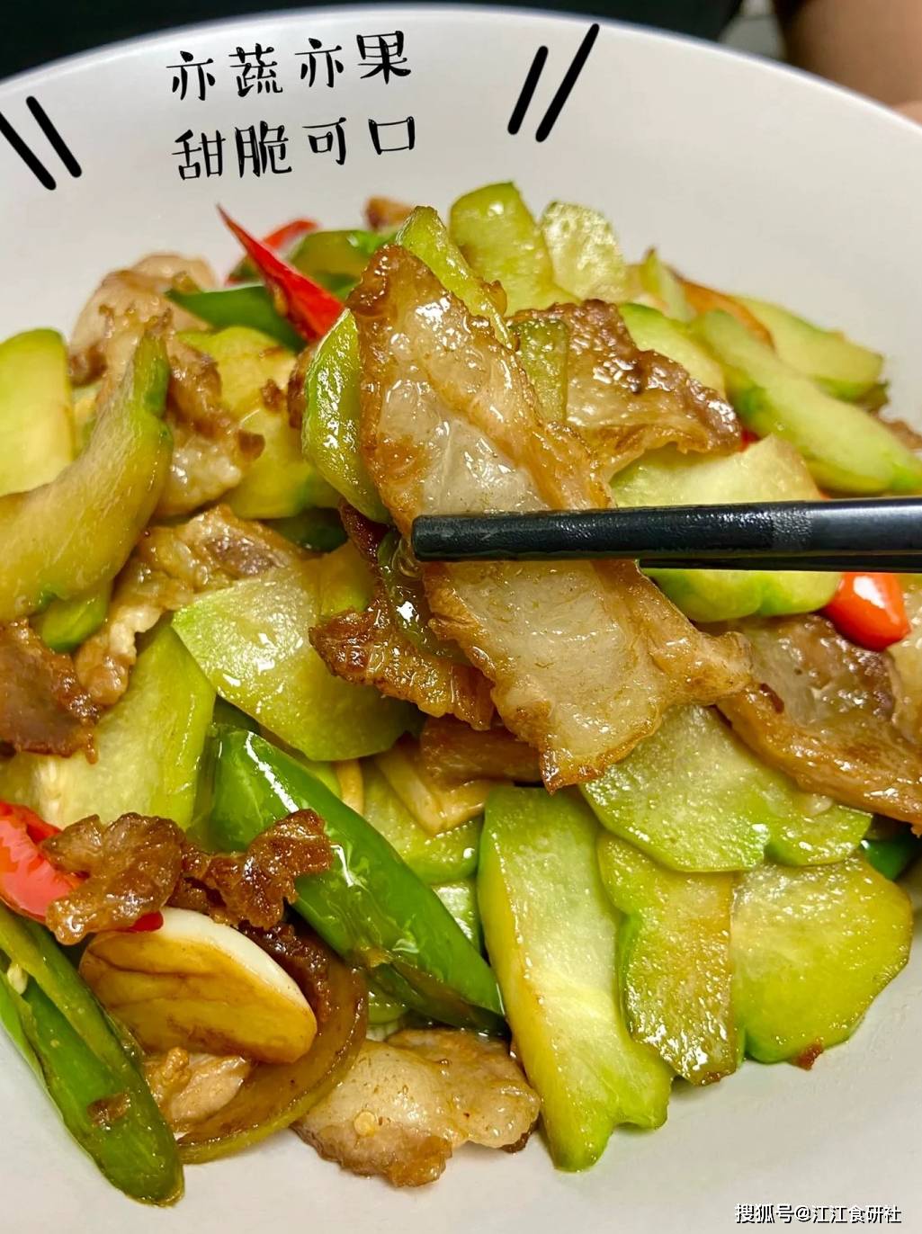 如果说上一道是快手菜,那这道就是能端上宴客桌的“实力派”!五花肉的油脂被佛手瓜吸收,肉片焦香,瓜片清甜,绝了!