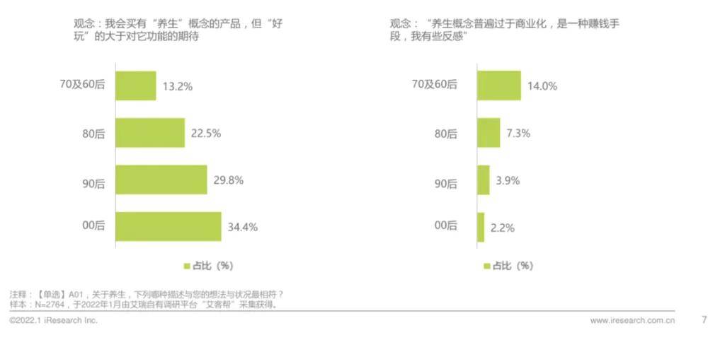 超过1/3的90后和00后群体,并不反感养生商业化,甚至觉得好玩,图源:艾瑞咨询