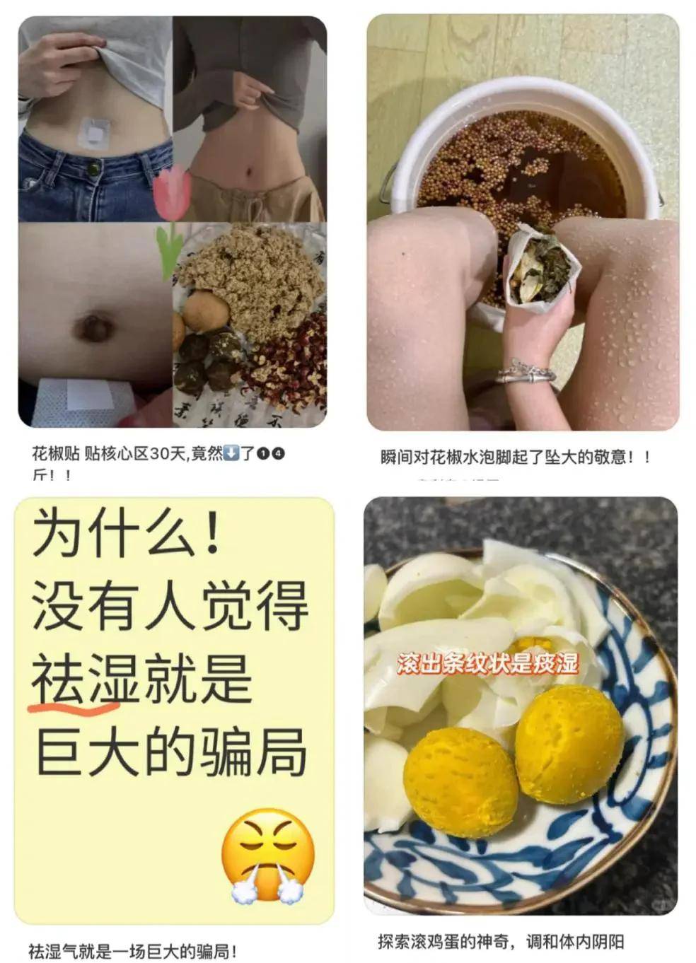在社交平台上,#祛湿#话题的浏览量已突破8亿次,18岁~34岁的女性用户是这股潮流的主力军,她们积极分享各种祛湿妙招:从传统的艾灸、晒背,到喝薏米水、吃保健品等应有尽有。