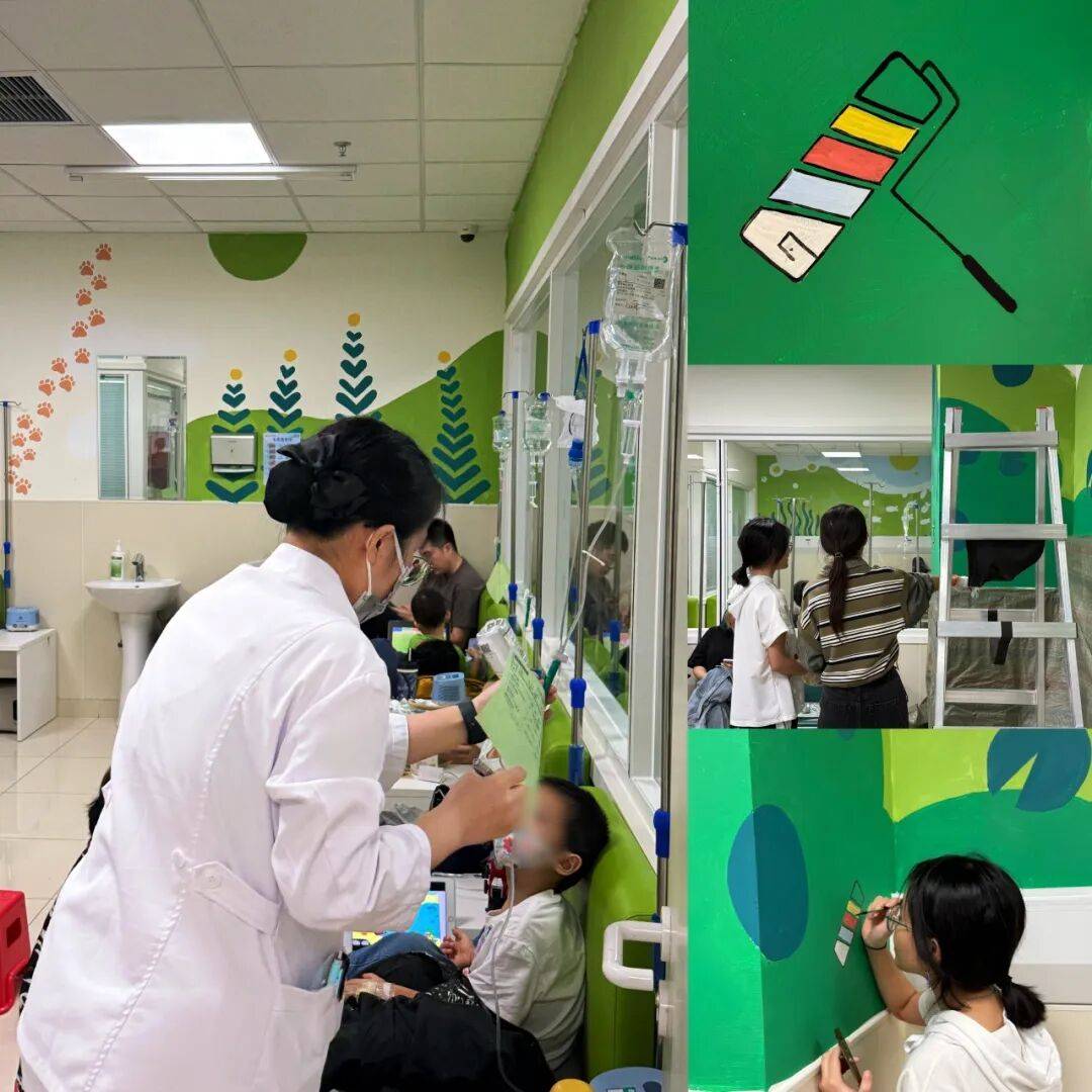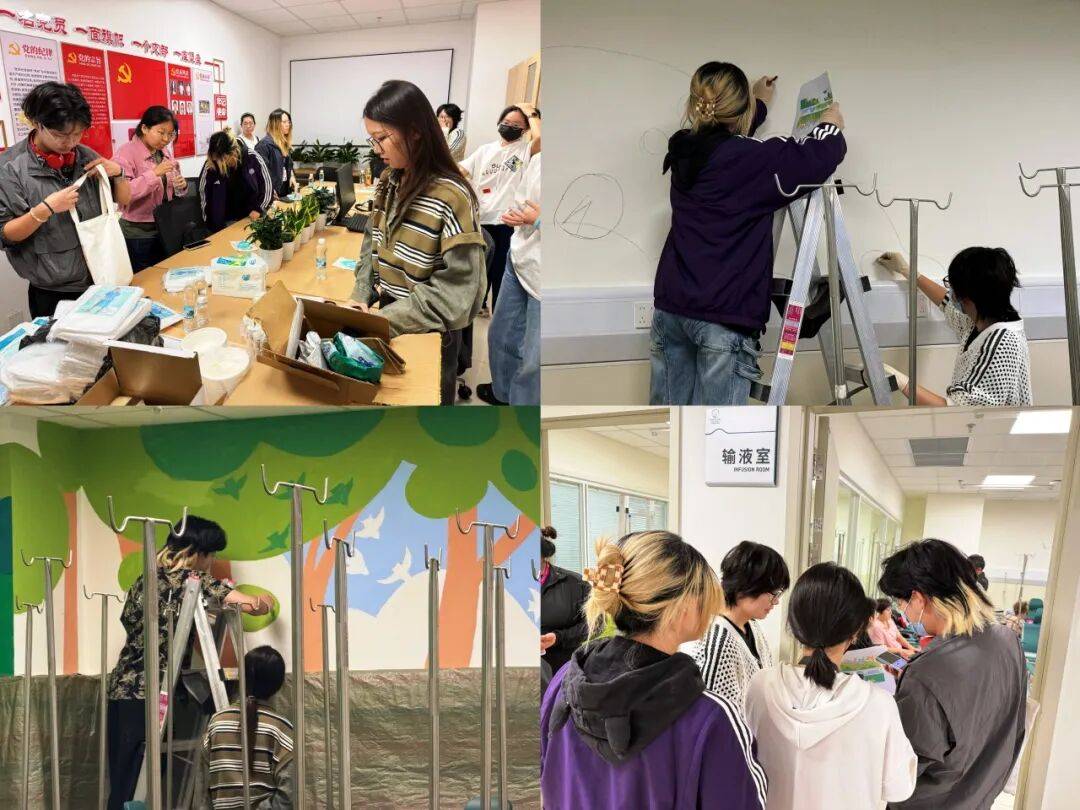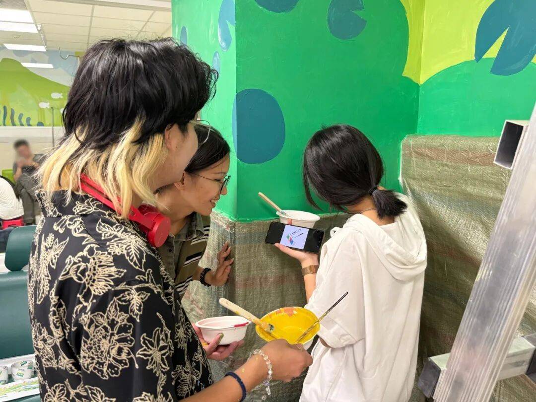 公益空间营造,亦是艺术疗愈实践。周末清晨,10名学生志愿者由清华园奔赴医院,与医护团队一起拆装备、调漆料、勾轮廓、涂色彩......“哥哥姐姐”的粉刷过程得到就诊患儿家庭的驻足围观,家长们纷纷为“清华学子践行健康公益志愿服务”行动点赞,紧张情绪与压力得到疗愈和放松。