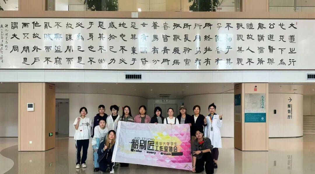 耕耘志愿田野,彰显清华学子责任担当与人文情怀。“这是我们团队‘首次解锁’医院场景,期待这些艺术作品可以缓解小朋友和医护人员的紧张和压力”,清华粉刷匠们说道。为不影响医院诊疗秩序,志愿者们早早到场准备、接力不停歇绘制,遇到好奇围观的小朋友,他们停笔耐心解答互动......细微之处,使手绘墙成为传递温暖的载体,更让青春力量在公益实践中绽放光芒,诠释“把学问做进社会里,把温暖送到需要处”的青年担当。