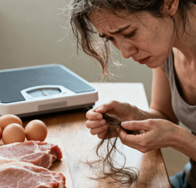 更难受的是没力气,爬三层楼梯都喘得不行。有次赶地铁跑了两步,眼前直接发黑,扶着栏杆缓了好半天。那时候还没往饮食上想,只觉得是自己没休息好。直到有天跟健身的闺蜜吃饭,她看我扒拉着碗里的生菜,直接把她碗里的鸡胸肉夹给我:“你再这么不吃蛋白质,不光掉头发,肌肉都要掉光了。”
