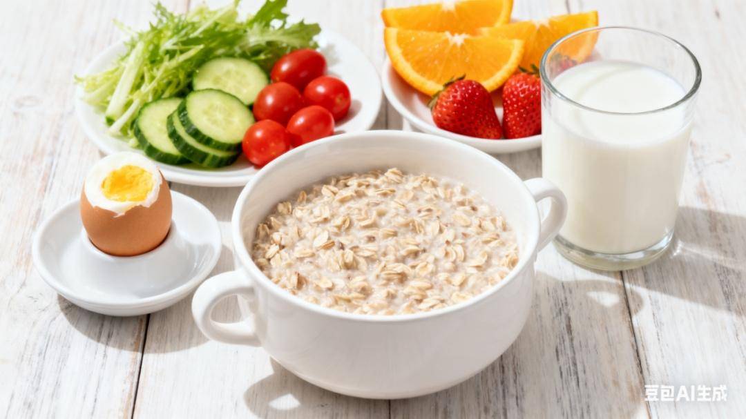 保证优质蛋白的摄入,例如水煮蛋、牛奶、鸡胸肉、瘦牛肉、豆腐、鱼虾等。研究显示,适当的蛋白质摄入可有效减低上午的饥饿感,午餐自动减少热量摄入,有利于控制体重。