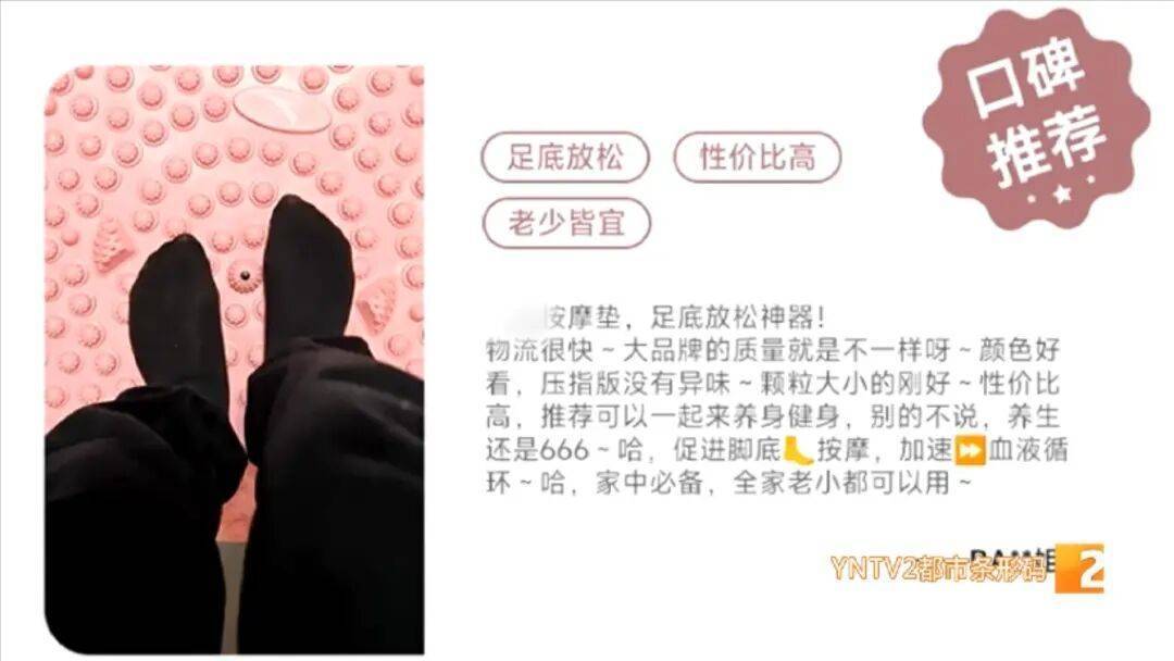 记者在购物平台上搜索指压板,看到价格十分亲民,从十多元到上百元不等,商家宣传的功能大致相同,以按摩、助眠和燃脂为主,因实惠且使用场景方便,这类商品在购物平台的销量都还不错。不过,医生提醒,养生和锻炼切莫盲目跟风,像指压板这类产品比较硬,对于平衡能力差以及有关节炎症等人群,踩在上面跑跳可能带来脚部损伤风险。