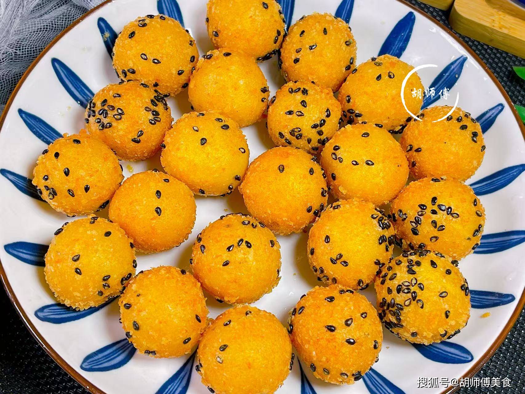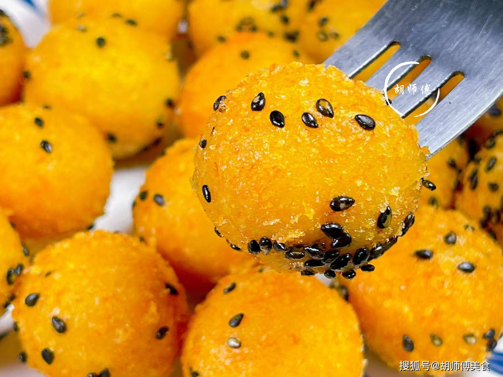 【食材准备】:柿子5-8个、糯米粉300克、面包糠。黑芝麻、食用油适量。