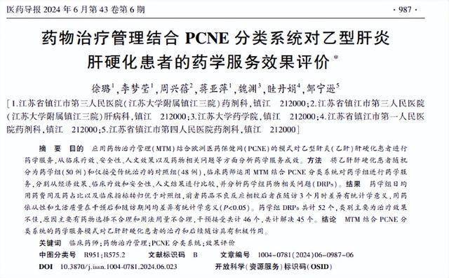 徐璐.药物治疗管理结合PCNE分类系统对乙型肝炎肝硬化患者的药学服务效果评价,医药导报,2024-06-01