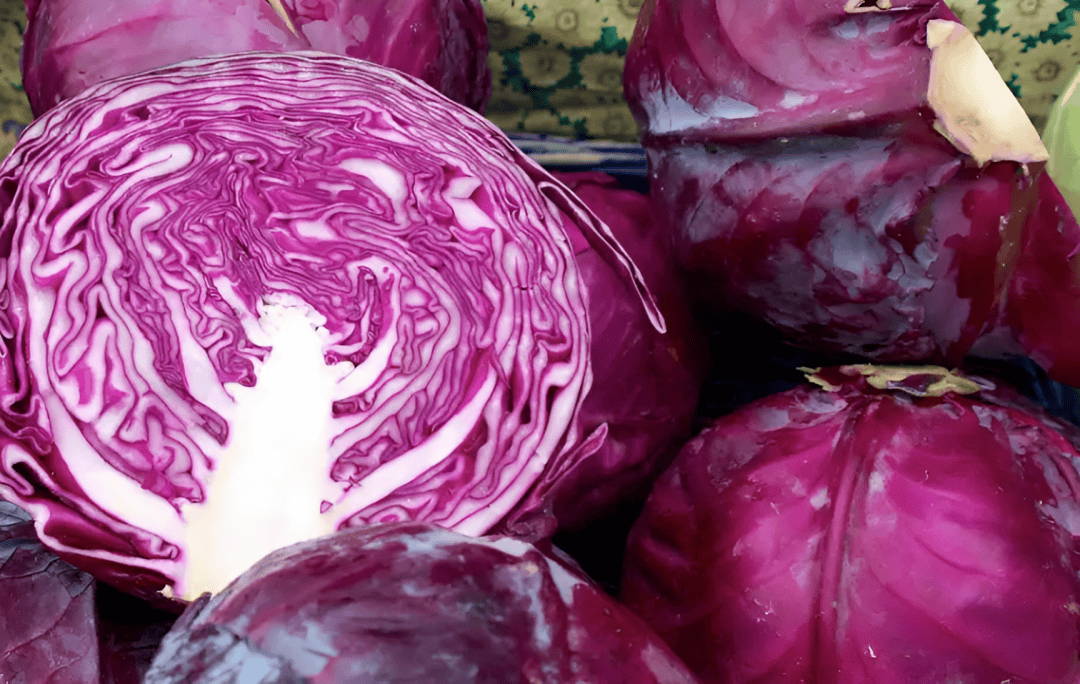 紫甘蓝那紫色的叶子中满是花青素,炒着吃或者凉拌着吃都很绵软,冬天食用不会让人感觉油腻,还能够补充维生素并有助于消化