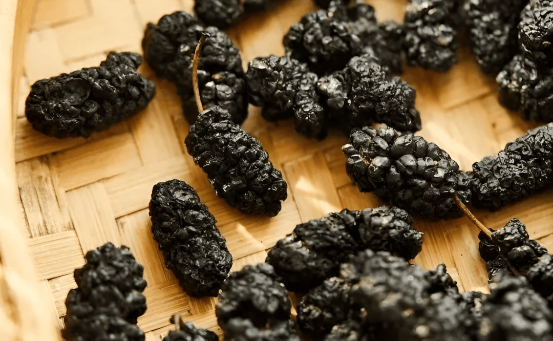 晒干的桑葚即为桑葚干,其花青素留存较多,且冬天不易变质,既可以用来泡粥,也能当作零食,不必担忧放久了造成浪费