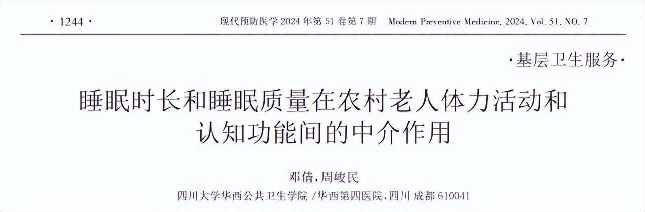 [1]邓倩,睡眠时长和睡眠质量在农村老人体力活动和 认知功能间的中介作用,现代预防医学,2024-04-10