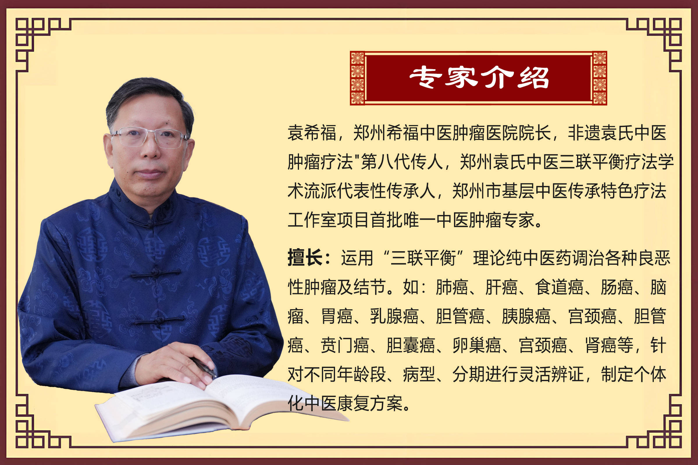 中医中药可以增强抗癌药物疗效、降低抗癌药物毒性、预防和治疗放化疗引起的白细胞降低以及增强机体免疫功能的作用,对患者的不适症状缓解有很大帮助。作为郑州希福中医肿瘤医院的院长,袁希福老中医结合多年临床实践中总结的经验,并在先人的基础上,总结出“三联平衡”抗癌理论,并以此为指导开展中医防癌抗癌,在针对癌症患者的治疗中,既关注当下的问题,还考虑疾病发展的未来趋势,兼顾短期疗效和长期调养的有机统一,从而帮助患者尽可能的延长生存周期。