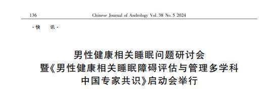 [1]中国男科学杂志,男性健康相关睡眠问题研讨会暨《男性健康相关睡眠障碍评估与管理多学科中国专家共识》启动会举行,2024-09-20