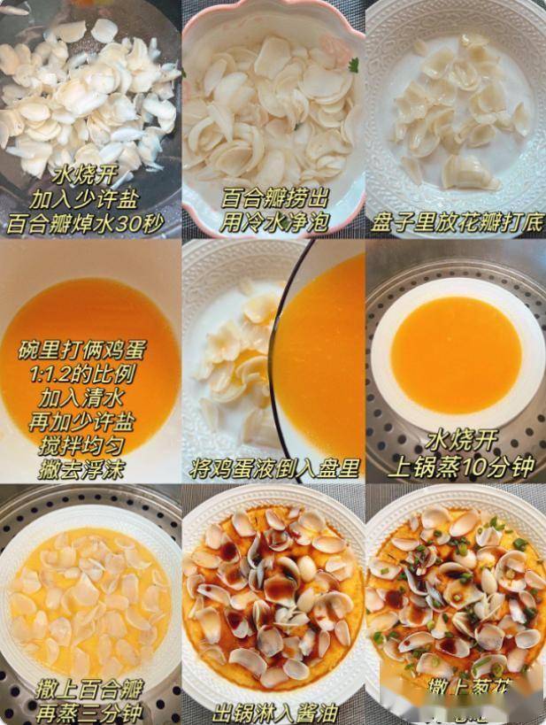 材料:适量鲜百合,2个鸡蛋,少许盐,酱油,葱花。