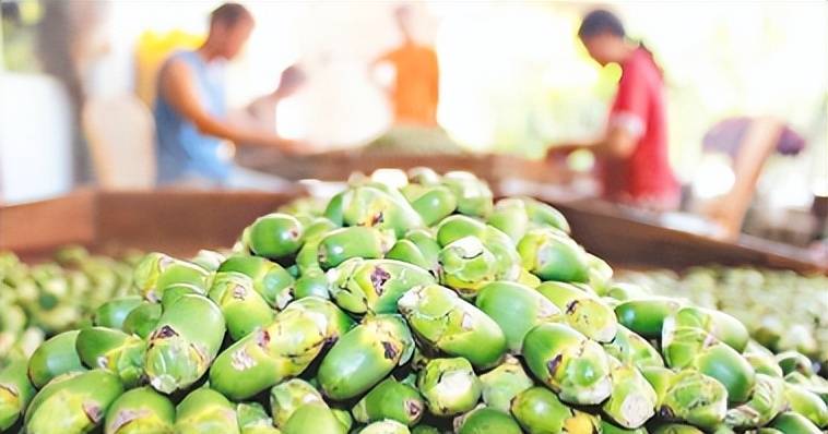 其中这种水果就是槟榔,新鲜的槟榔在我国的台湾、海南十分的受欢迎。而在其它地区槟榔一般是作为零食按个售卖,包装也比较精致,但销量依然不怎么样。