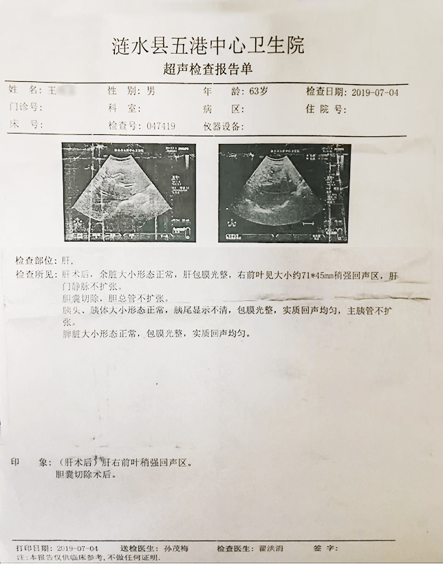 2015年1月23日,在女婿的帮助下,王师傅在上海东方肝胆外科医院接受了切除手术。手术很成功,之后他严格按照要求每月复查。