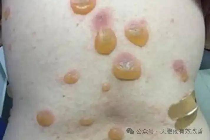 52 岁的张先生,天疱疮反复发作 1 年多。初诊时,躯干、四肢布满黄豆至蚕豆大小的水疱,一碰就破,渗淡黄色液体,结暗红痂,又痒又疼,夜间难以入眠。此前用外用药暂时缓解,但停药就复发,还伴有口干不渴、大便稀溏、浑身乏力。舌苔白腻、脉象濡缓,辨证为 “脾虚湿盛、湿热蕴肤”,用健脾祛湿方剂调理。