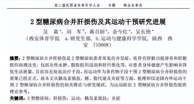 [1]吴霜,2型糖尿病合并肝损伤及其运动干预研究进展,第二届陕西省体育科学大会论文摘要集(专题九),2024-06-18