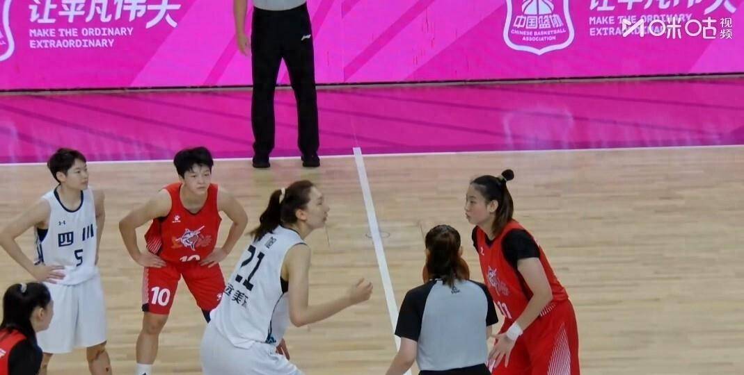 比赛刚开始不久,四川队就建立起了13分的领先优势。韩旭在中距离接到球后,转身跳投,球应声入网,她的手感如火如荼,半截篮几乎每次都能命中。场边镜头也扫到李梦和李缘,两位国家队队员穿着休闲装,轻松聊天,看得出来他们对这场比赛的胜负并不紧张,仿佛这场比赛只是一次表演赛。