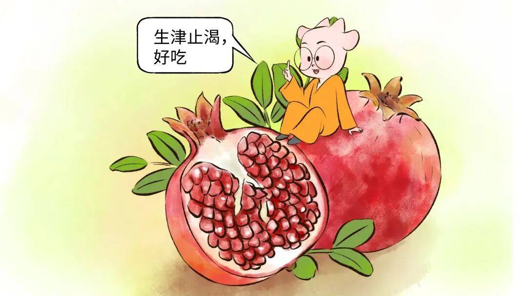 ④止泻、消渴。《本草纲目》记载:“榴者,天浆也,止泻、化淤、清渴、祛火”。石榴具有“收敛固涩”的作用,性温不寒凉,适合肾气不固导致的小便频多,或秋冬肠胃受凉引起的腹泻。加上汁液丰富,可以帮助我们缓解秋燥。
