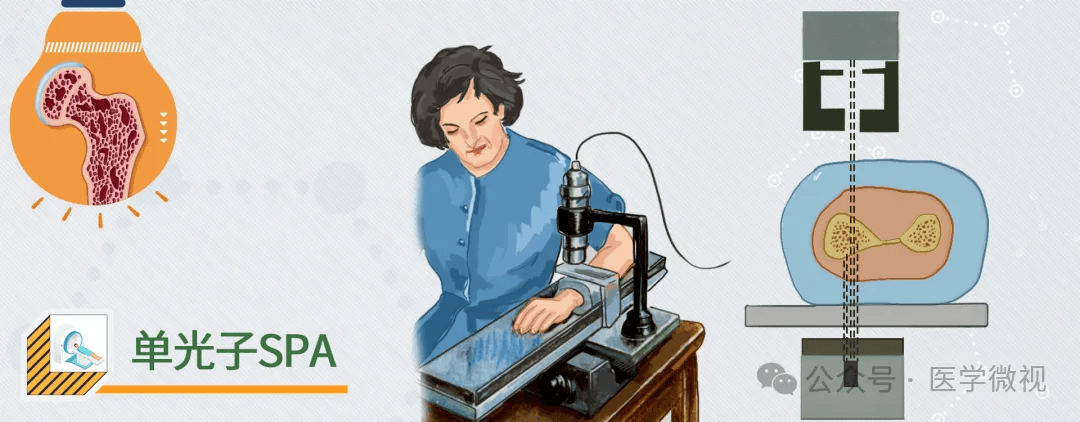 最早的检测骨密度的方法叫单光子或者SPA检测方法,它是用同位素测量前臂腕关节这个部位的骨密度。