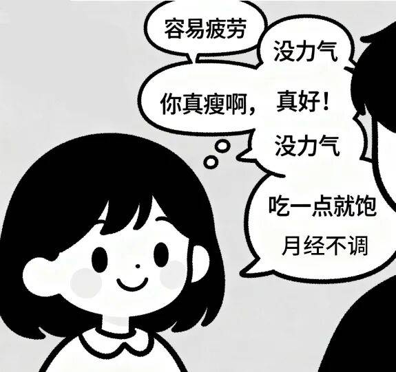 你是否常常听到别人说:“你真瘦啊,真好!”可你自己却感觉到:容易疲劳、没力气、吃一点就饱,甚至月经不调……