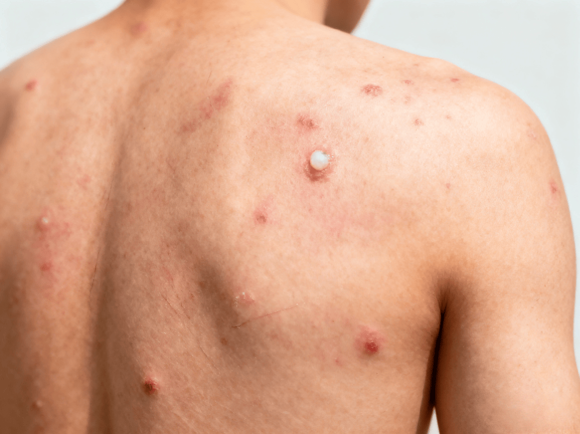 皮肤红痒痘多:额头、脸颊长红肿疼的痘或粉刺,晒后易发红,碰破出血难止;