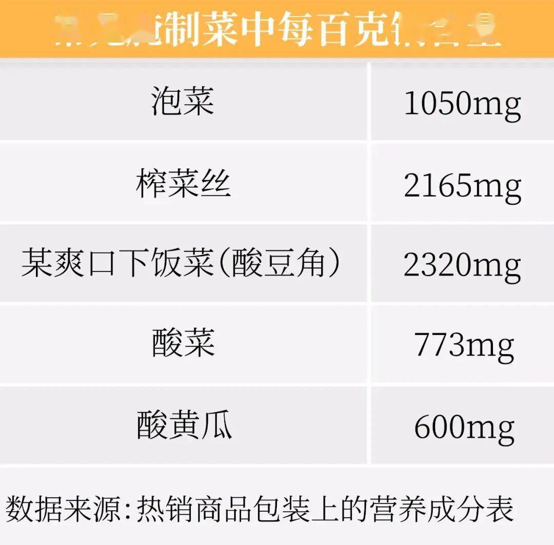 腌制菜大多是用盐腌制而成,含钠量极高,且容易有亚硝酸盐超标,增加患癌风险。