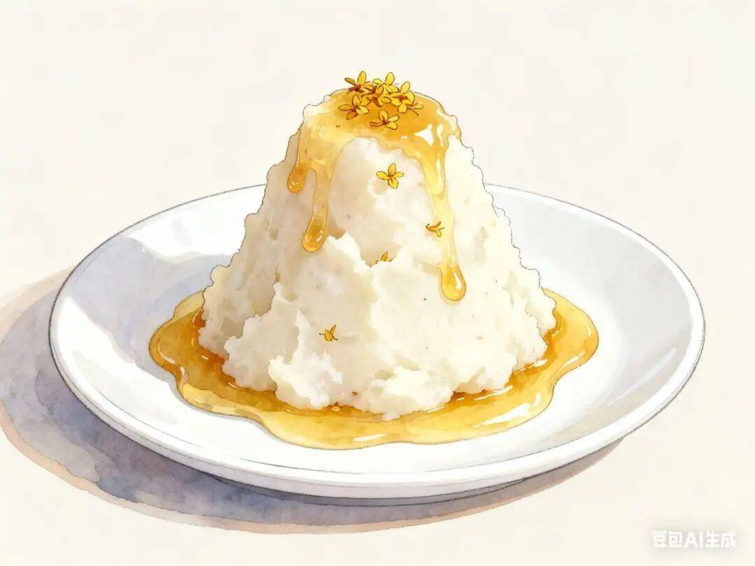第三步,加入蜂蜜,撒上桂花即可食用。