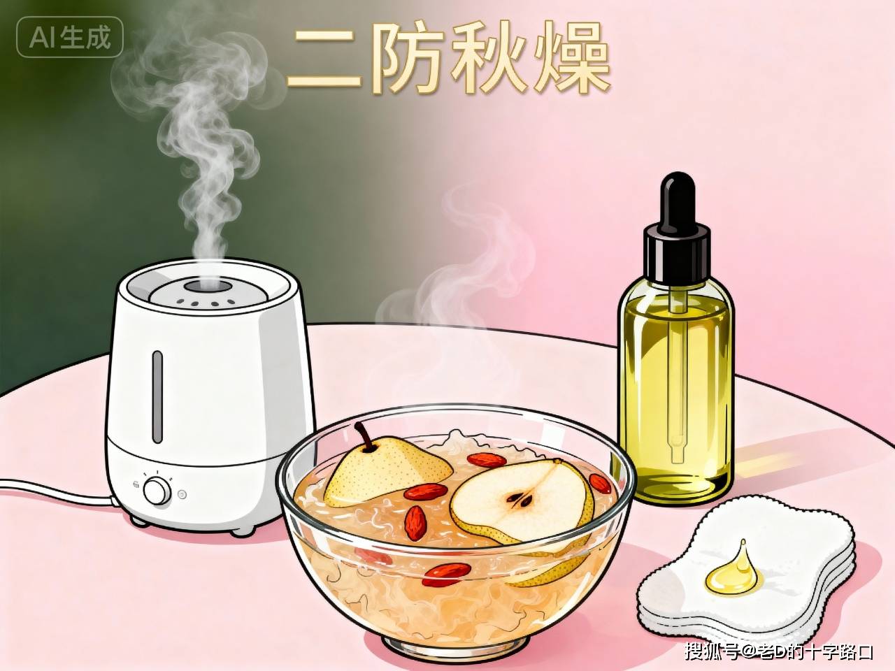 二防秋燥:凉燥比温燥更伤肺与初秋“温燥”不同,霜降属“凉燥”,表现为唇裂、干咳、皮屑增多。单纯灌水难奏效,需“外用+内服”双管齐下。内服可选银耳雪梨羹,银耳多糖可在呼吸道形成保护膜;外用建议睡前用橄榄油轻压面部3分钟,室内湿度保持40%—60%,加湿器每日换水以防细菌滋生。