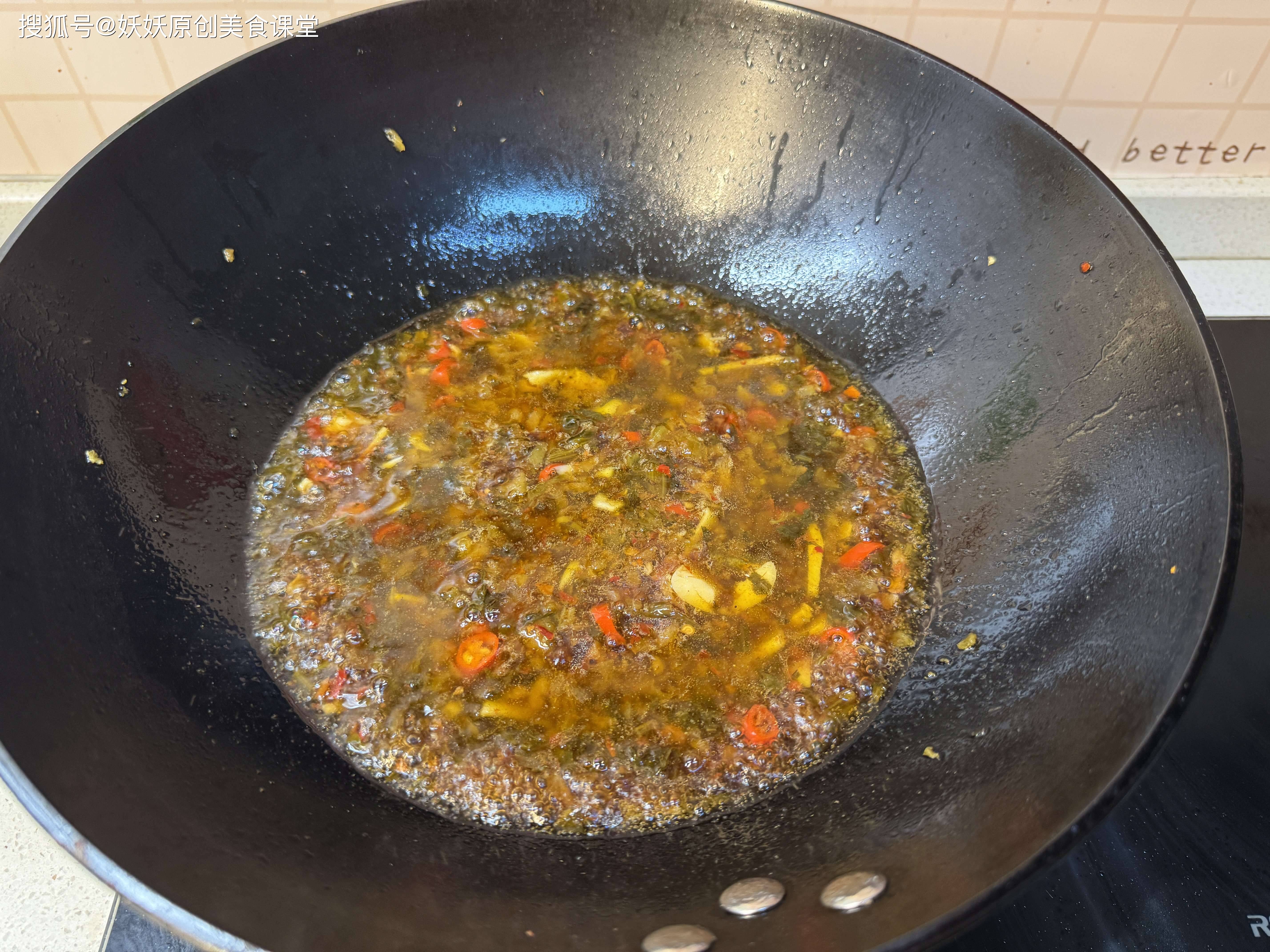 3,酸菜和配料的香味炒出来后加入适量的清水,一勺生抽,少许老抽,少来一点点盐,因为酸菜有咸味,白胡椒粉可以适当多加一些,去腥效果极好。