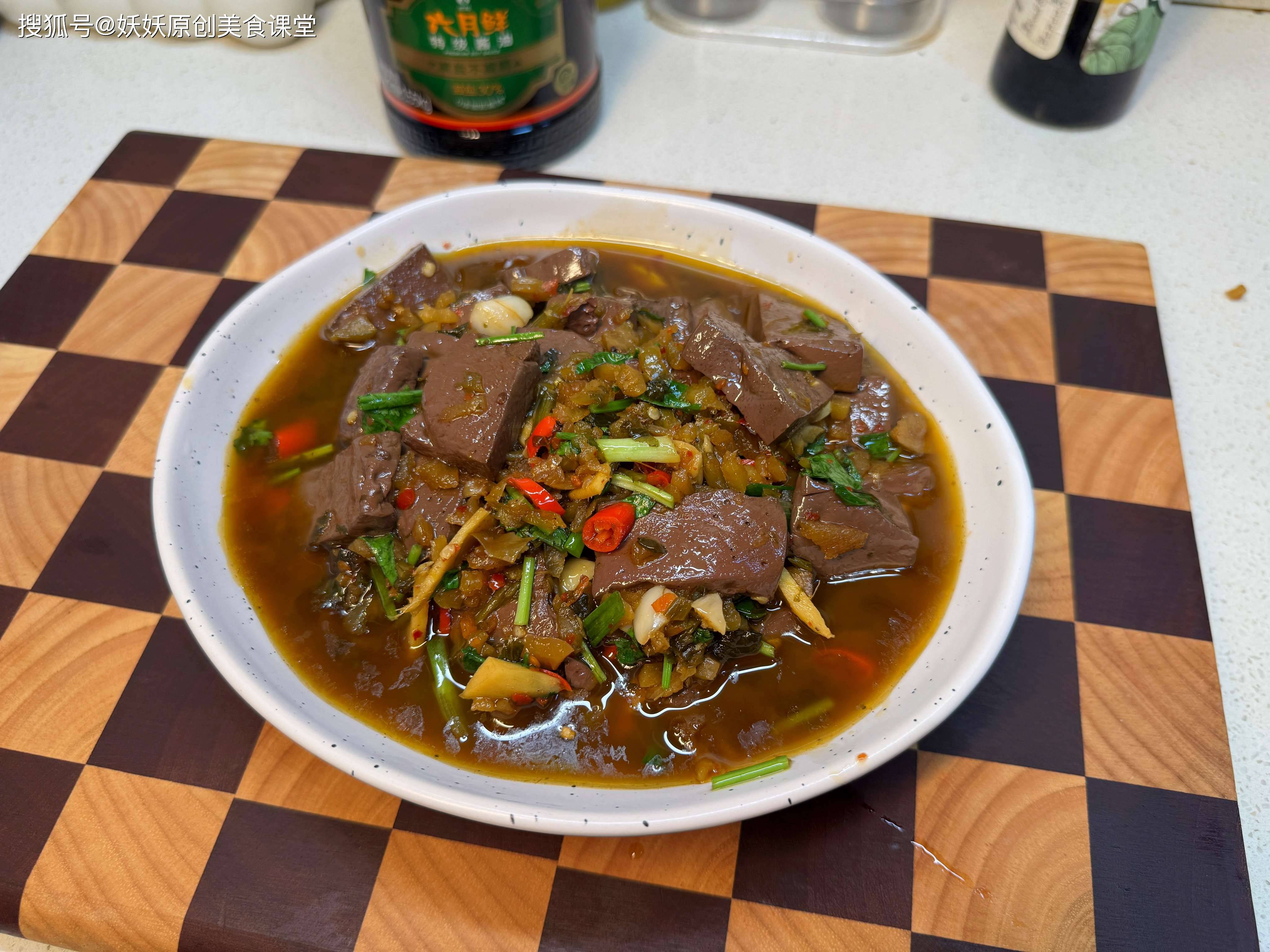 猪血价格便宜做法简单,北方的冬天通常拿它来炖酸菜,南方的朋友喜欢拿猪血来涮火锅或者烧菜,赣菜小馆子里有一道特别好吃的酸菜烧猪血,用的是本地的腌制的盐菜,搭配猪血一起烧,口感酸辣鲜香,开胃又解馋,爱吃猪血的朋友可以试试这个做法,热乎乎的一大盘端上桌,特别适合秋冬季的寒冷天气食用,吃完浑身都是暖暖的。