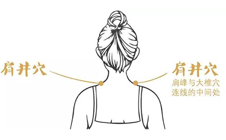 按摩方法:通过拿捏肩部肌肉,或用空心手掌拍打该穴位50 次,早中晚各进行 1 次即可。