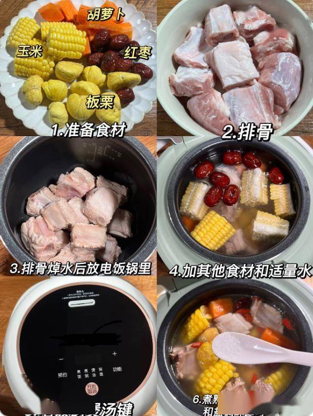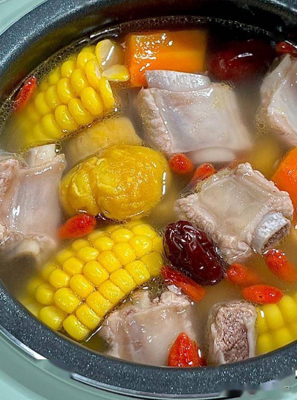 材料:板栗,玉米,胡萝卜,适量排骨,红枣,盐,枸杞。