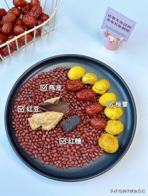 材料:陈皮,适量红豆,适量板栗,适量红枣,一块红糖。