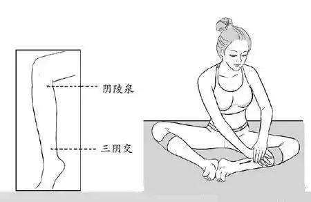 从三阴交穴开始向阴陵泉穴推。三阴交穴是三条阴经的交叉点,可以调动肝、脾、肾这三条经络的气血以通畅脾经。