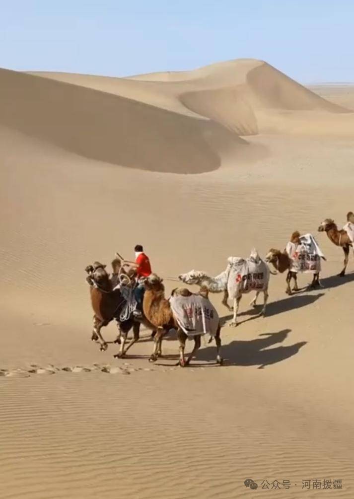 “河南援建哈密,我们带着感恩之心走来,想亲手搭起新疆与中原的文旅桥梁。”队员们还一路收集文献、研究骆驼习性、记录风土人情。