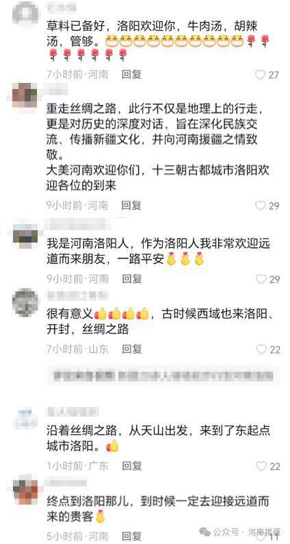 河南网友早已喊话:“洛阳人民热烈欢迎你:水席齐备,烩面管够,就等骆驼队进城!”